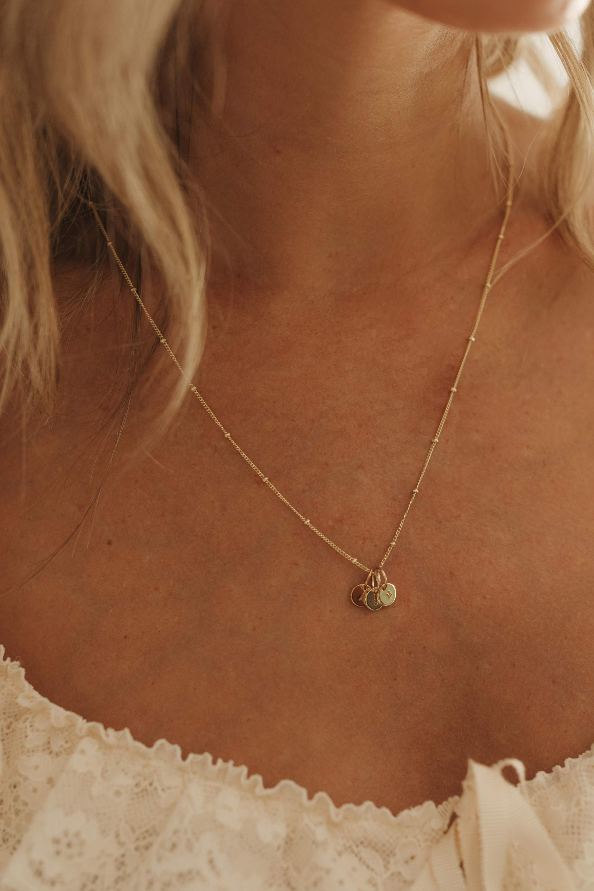 - Model in second image wears all three necklace lengths